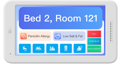 High resolution, multi-touch, 7-inch LCD display. Includes two-way communication, bedside swipe card, medical and nursing information. Supports patient call, nurse presence and nurse assist.